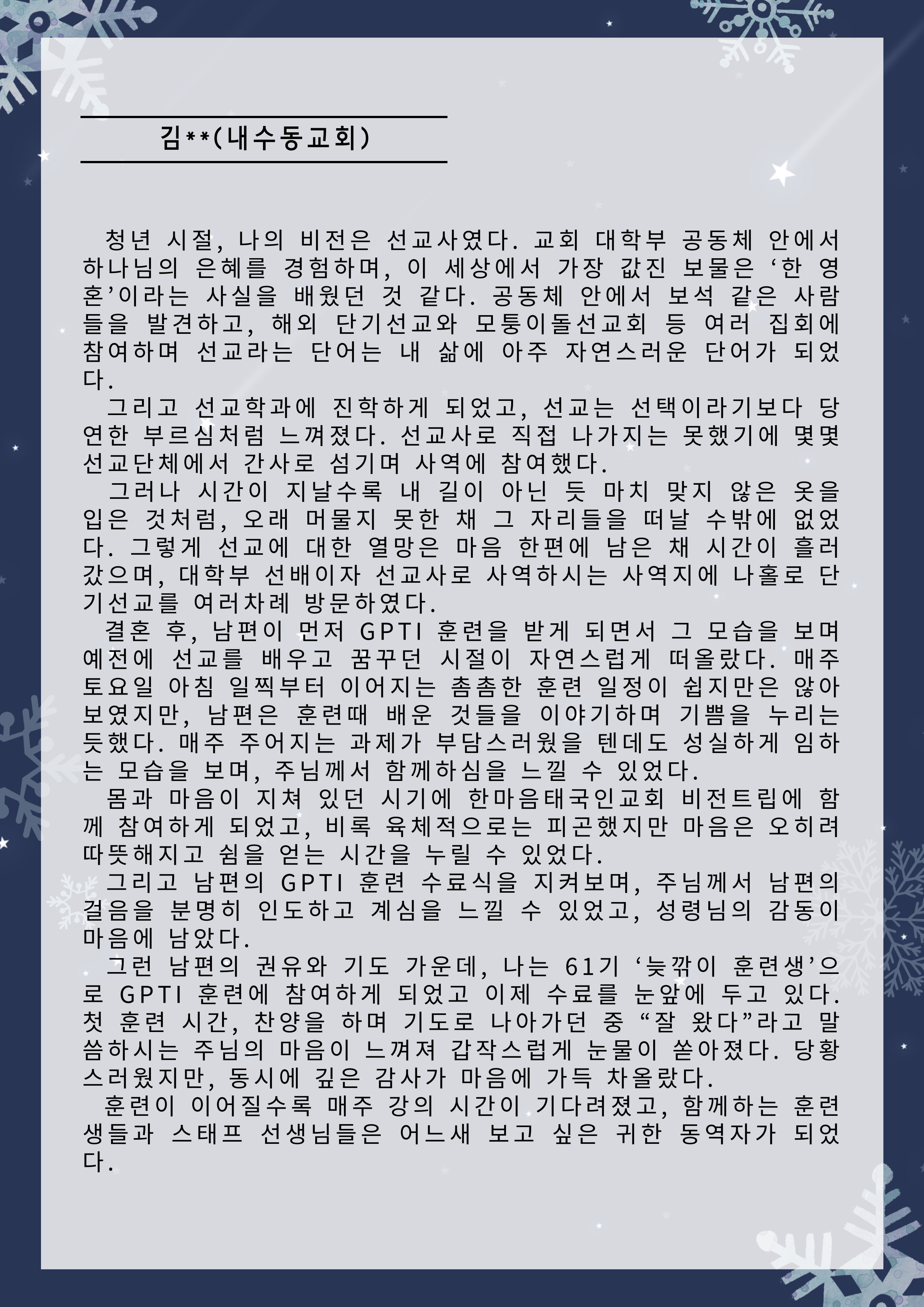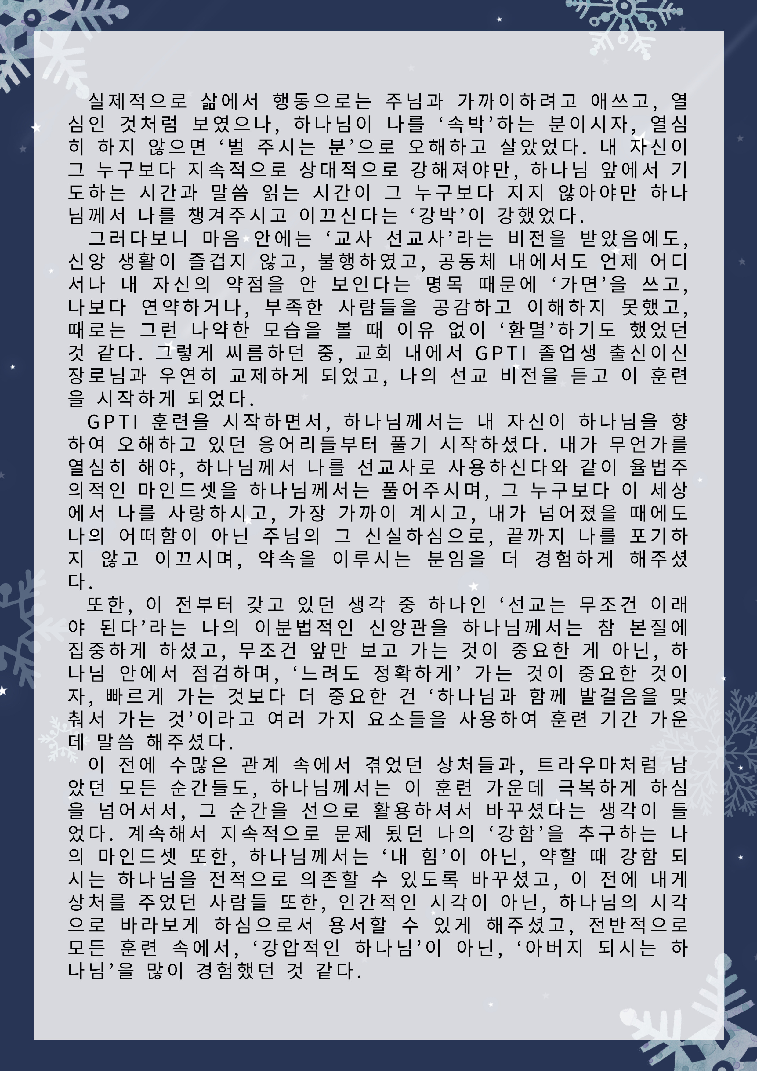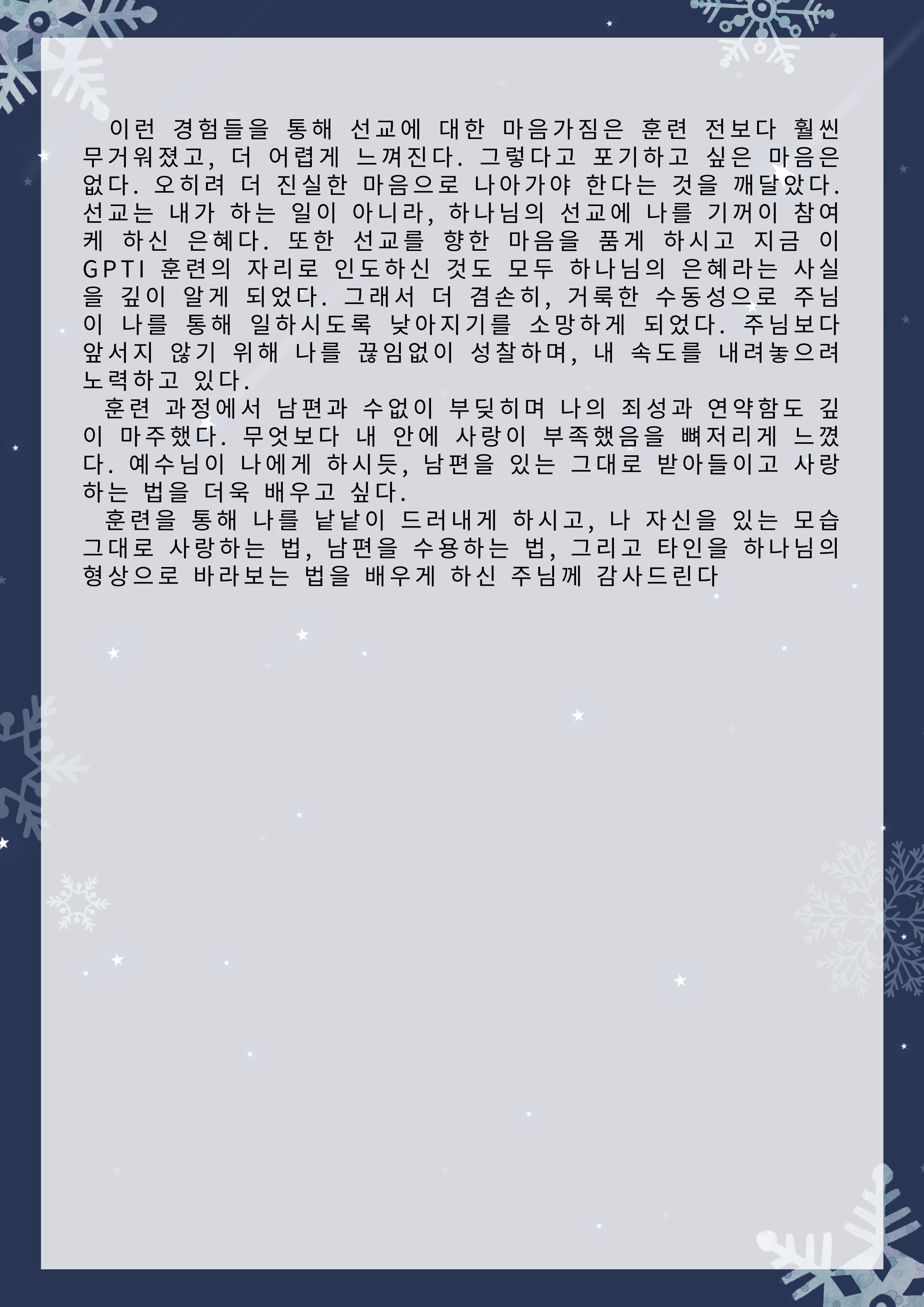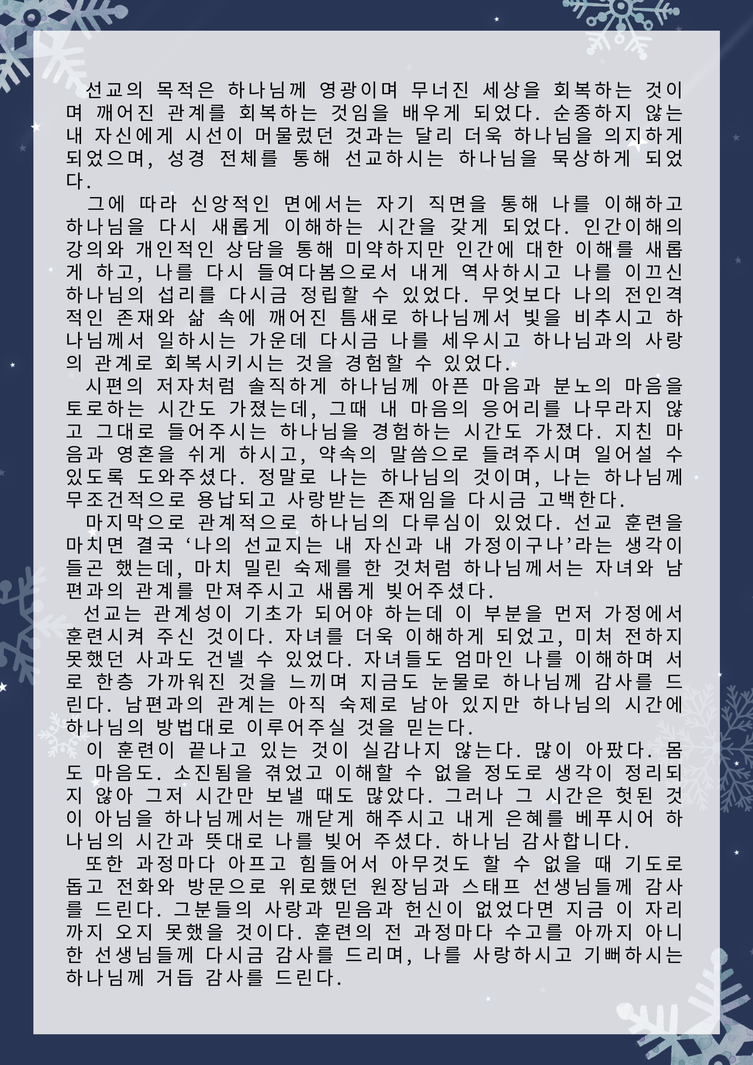한국전문인선교훈련원 훈련간증문 글보기61기 훈련 간증문 운영자 조회수 6 2025-12-31 11:33:44 첨부파일002.png (573.5KB) 목록 댓글 [0] 더보기-61기 훈련 간증문운영자 2025-12-31다음60기 훈련 간증문운영자 2025-07-23 Powered by MangBoard | 워드프레스 쇼핑몰 망보드