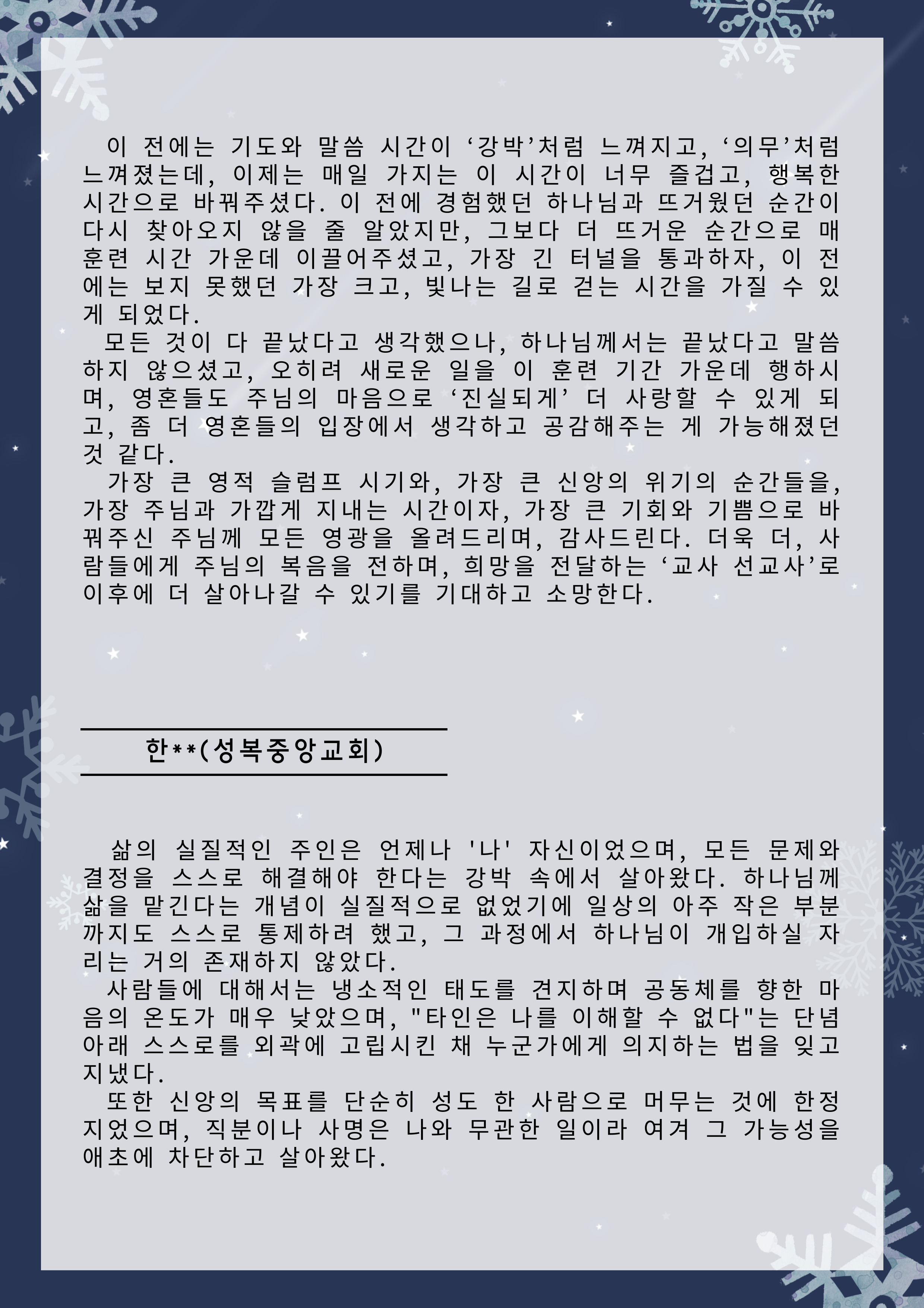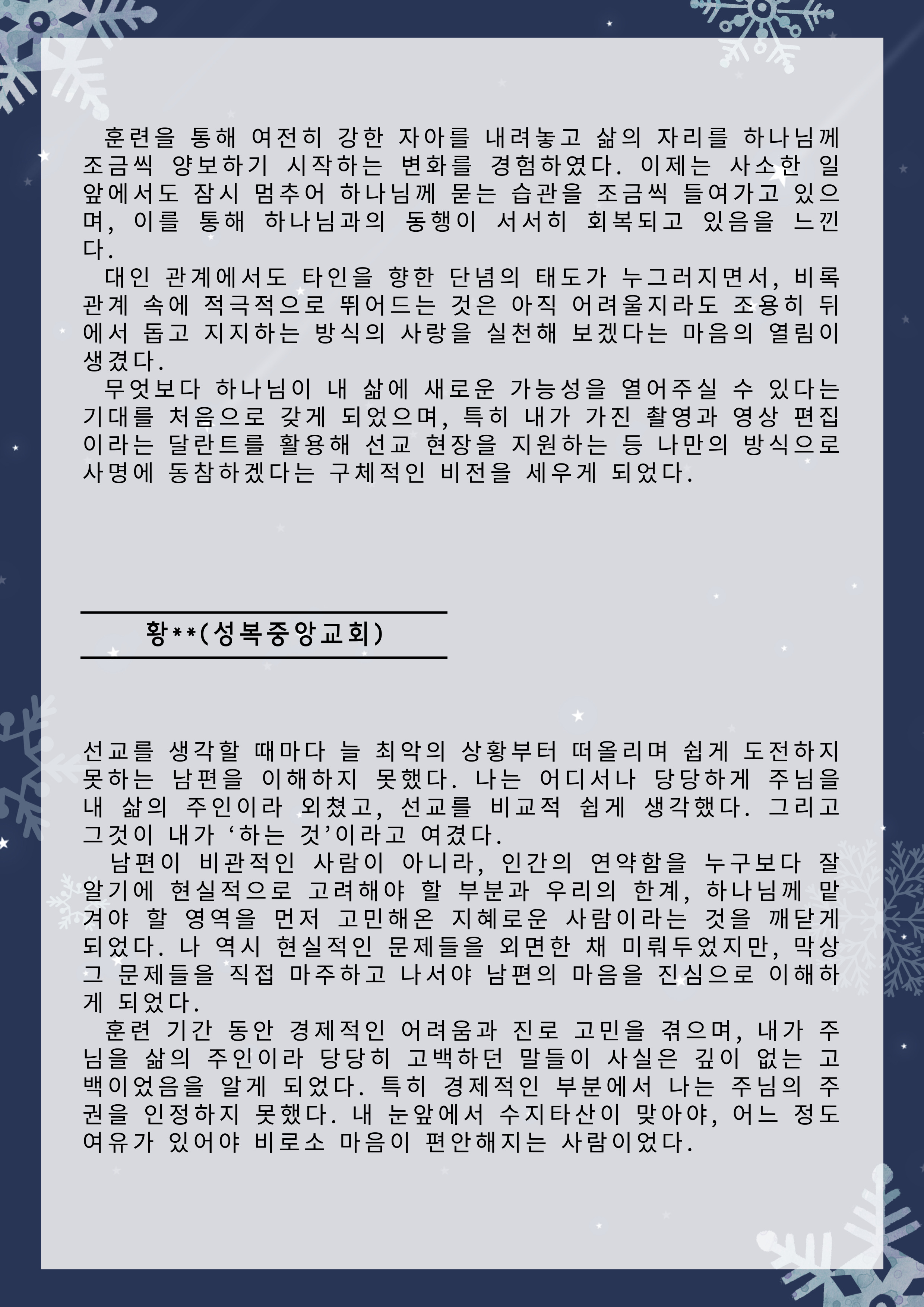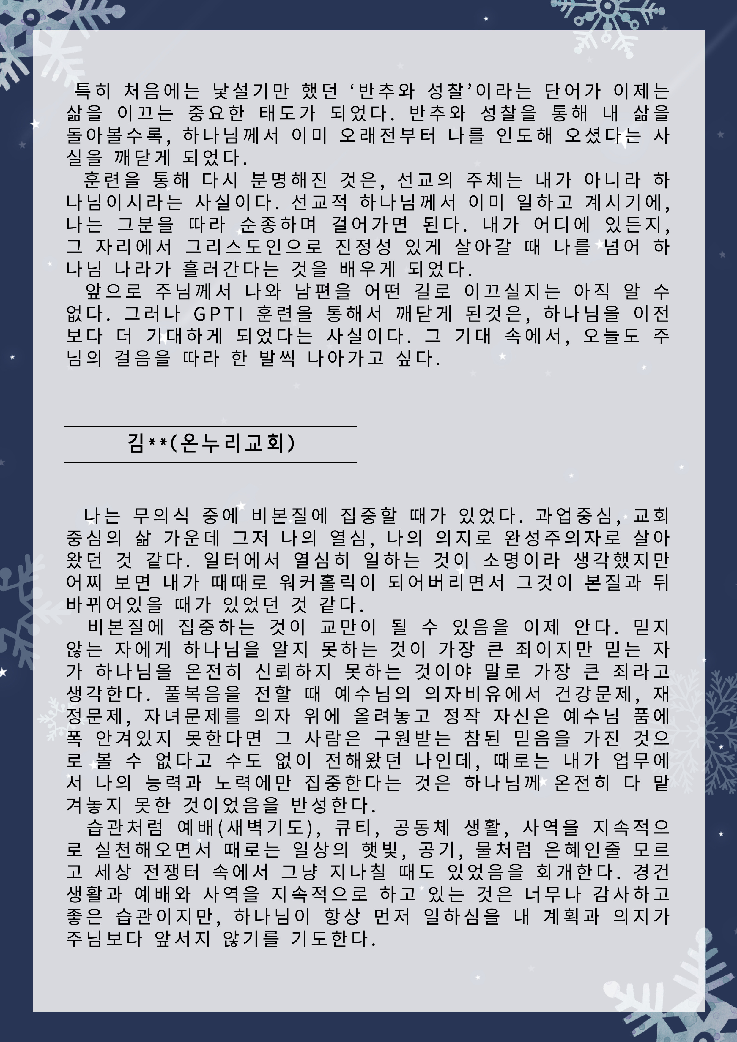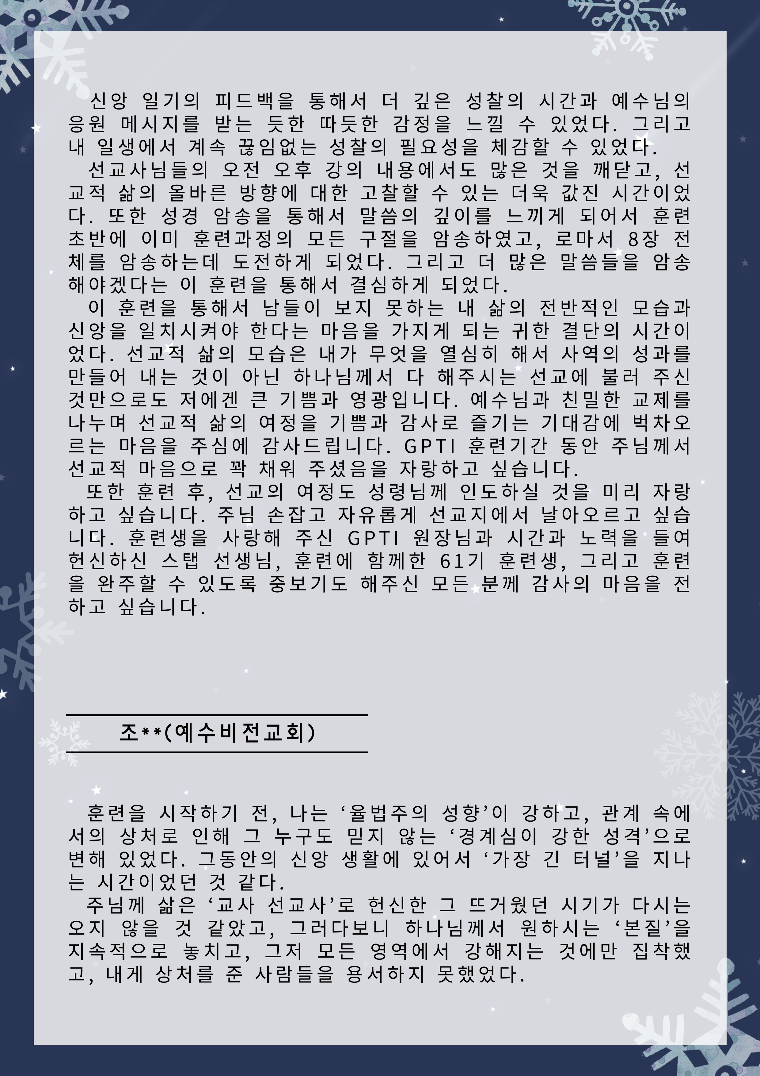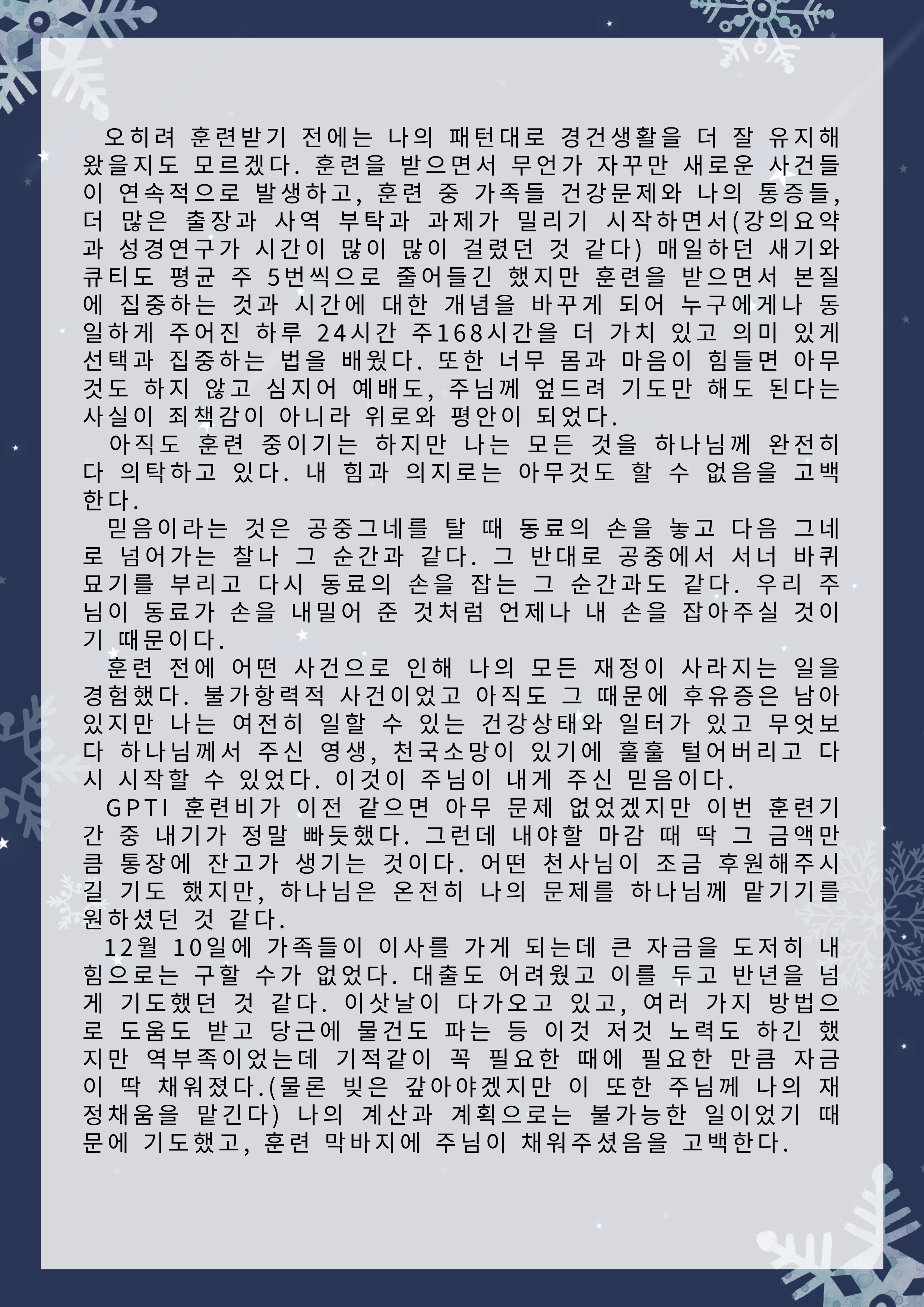 한국전문인선교훈련원 훈련간증문 글보기61기 훈련 간증문 운영자 조회수 6 2025-12-31 11:33:44 첨부파일002.png (573.5KB) 목록 댓글 [0] 더보기-61기 훈련 간증문운영자 2025-12-31다음60기 훈련 간증문운영자 2025-07-23 Powered by MangBoard | 워드프레스 쇼핑몰 망보드